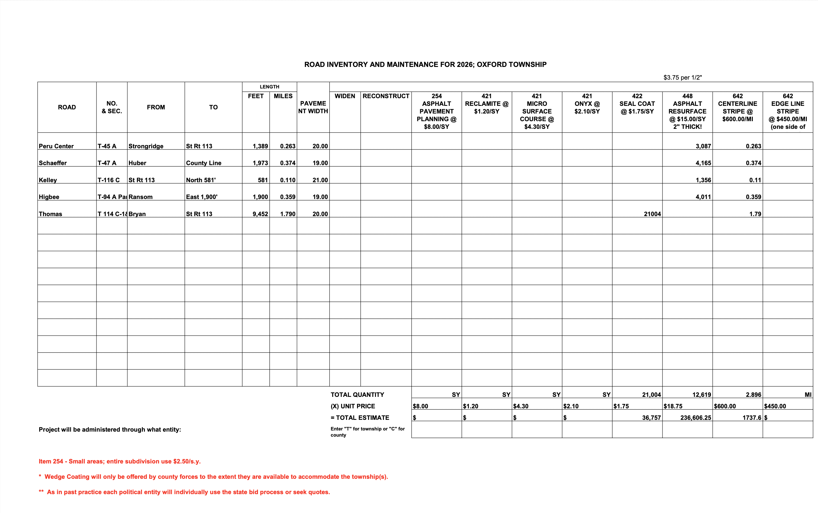 Oxford Township 2026 Roadwork Plan